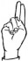 На ћирилици написано САВЕТА ЛЕВИЋ састоји се из 11 слова [?]. Исписано ћириличном једноручном азбуком за глувонеме: